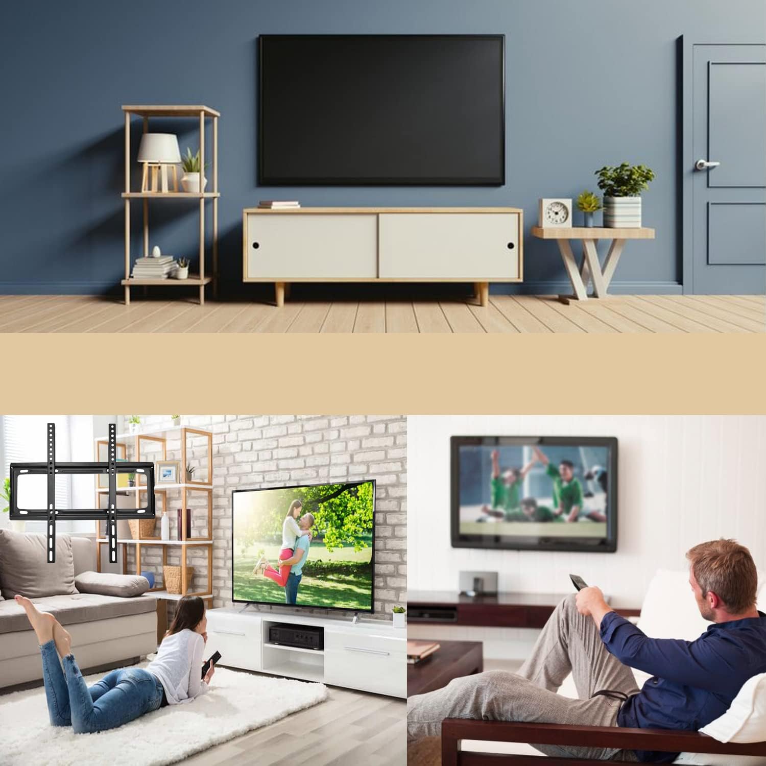 Space Saving: This mounting bracket could make your TV as close as possible to the wall, saving space considerably for your room. With a slim profile, it looks like blended with your wall.